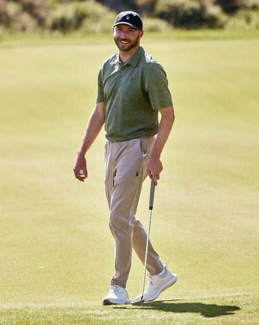 Engineered for movement and versatility, these Spyder Men’s Golf pants combine 2-way FlexWeb stretch with lightweight, breathable fabric for all-day comfort. Built to handle the elements, they feature HydroWeb moisture resistance and ProWeb wind protection, so you stay dry and focused from fairway to city streets. With a tapered fit, ribbed cuffs, and multiple pockets, they blend modern style with everyday function, perfect for travel, work, or wherever the day takes you.